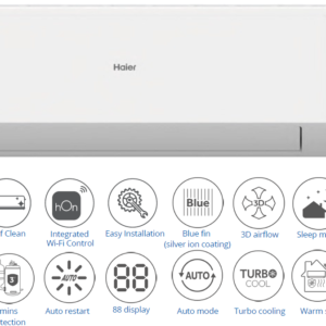 Haier Revive Plus je klima uređaj osmišljen da obezbedi vrhunski komfor i zdravu klimu u tvom domu ili poslovnom prostoru. Njegov moderan dizajn i napredne tehnologije stvaraju prijatnu atmosferu, gde god da ga postaviš. Sa fokusom na kvalitet vazduha i energetsku efikasnost, ovaj uređaj ne samo da održava idealnu temperaturu tokom cele godine, već i čisti vazduh od štetnih čestica i alergena.